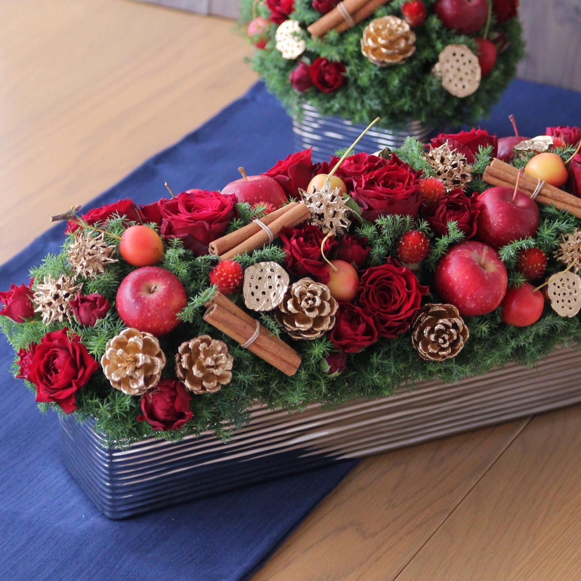 ホリデーシーズン限定のスペシャルクラス、クリスマスシーズンを華やかに彩るアレンジメントを作ります。フレッシュなエバーグリーンとバラ、実物やナチュラルオーナメントを合わせて、デコレーションされたパウンドケーキのようなデザインを楽しみましょう。日持ちの良いグリーン類を使いますので、クリスマスまで長く楽しめるのも嬉しいポイントです。(写真2枚目がアレンジの見本です)